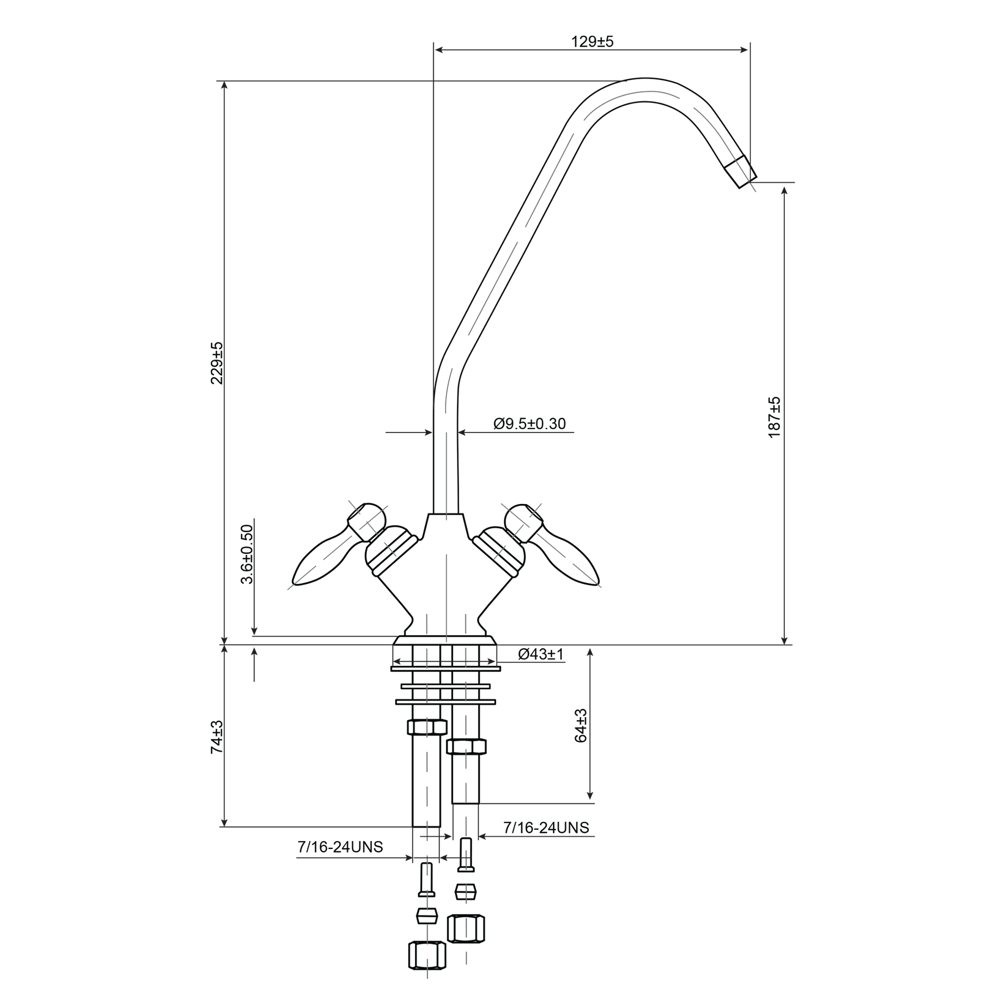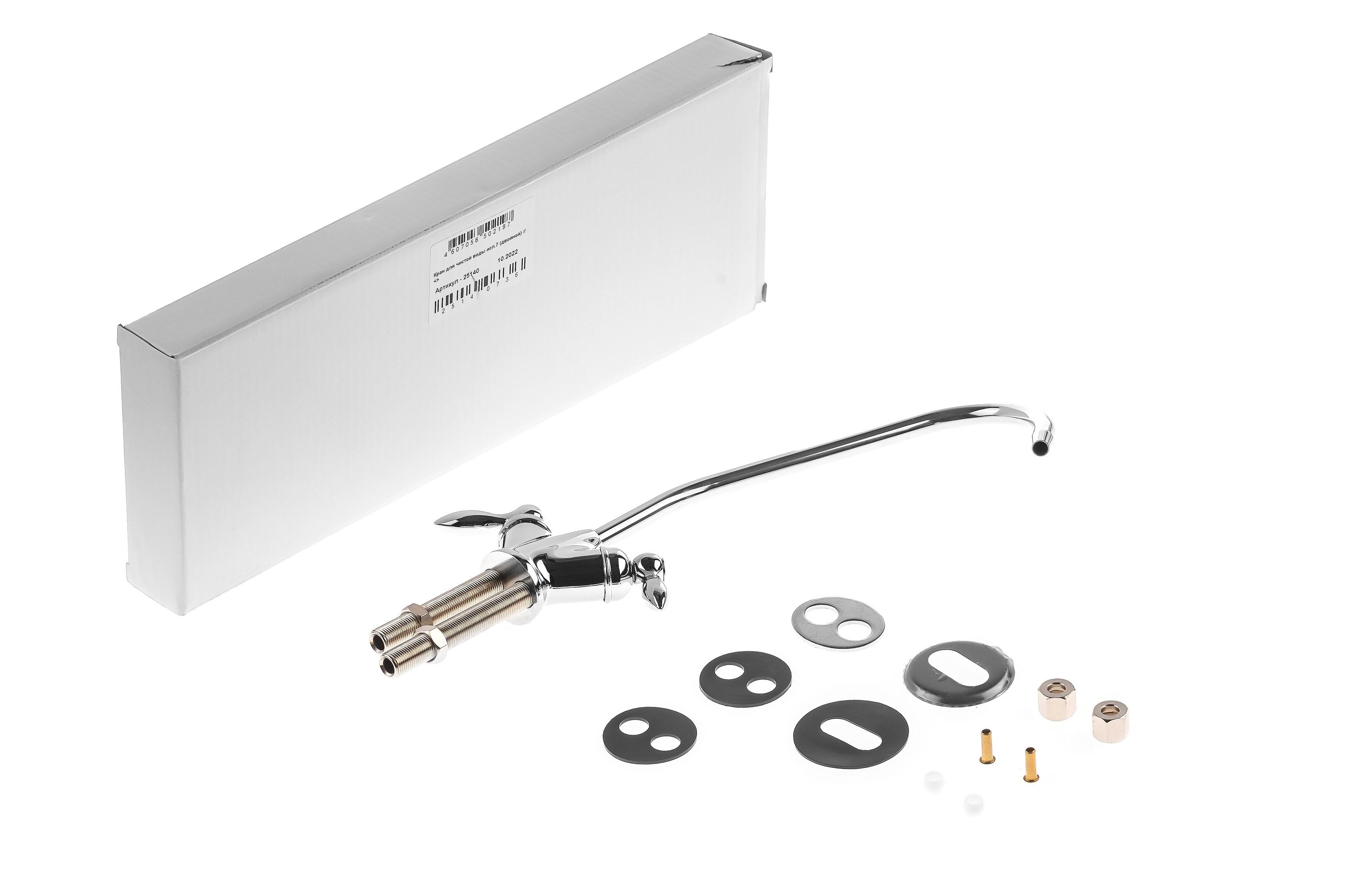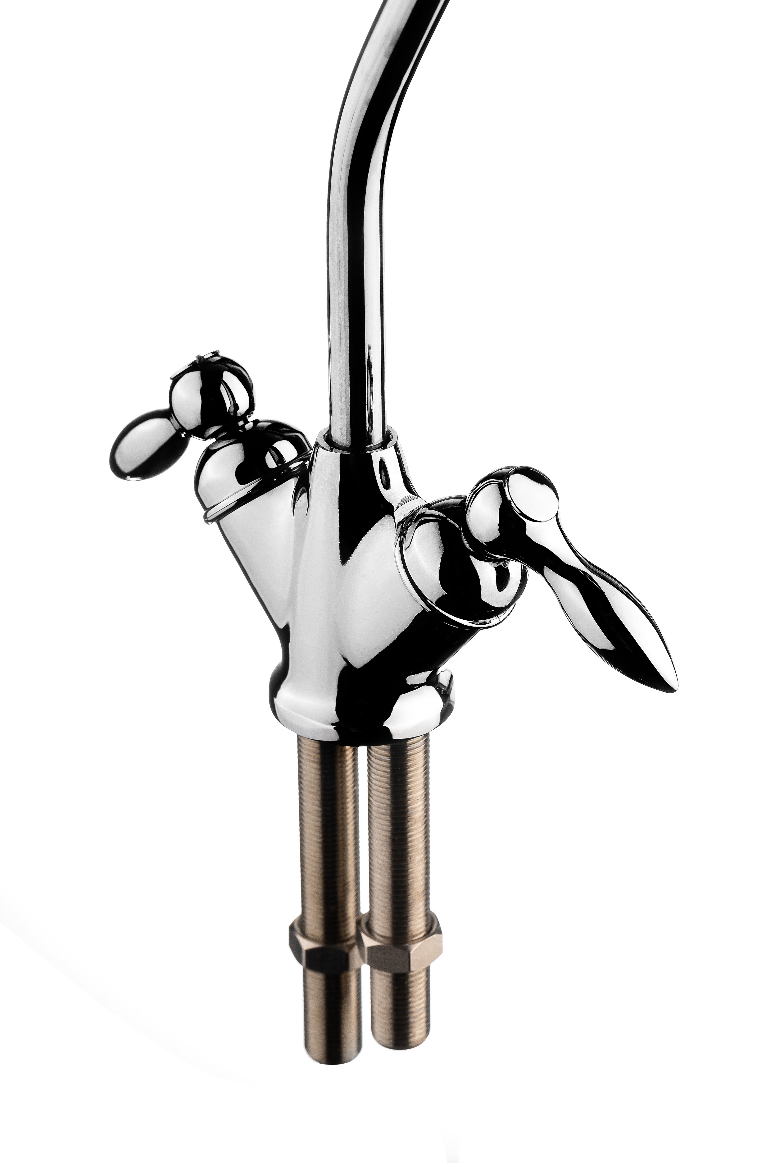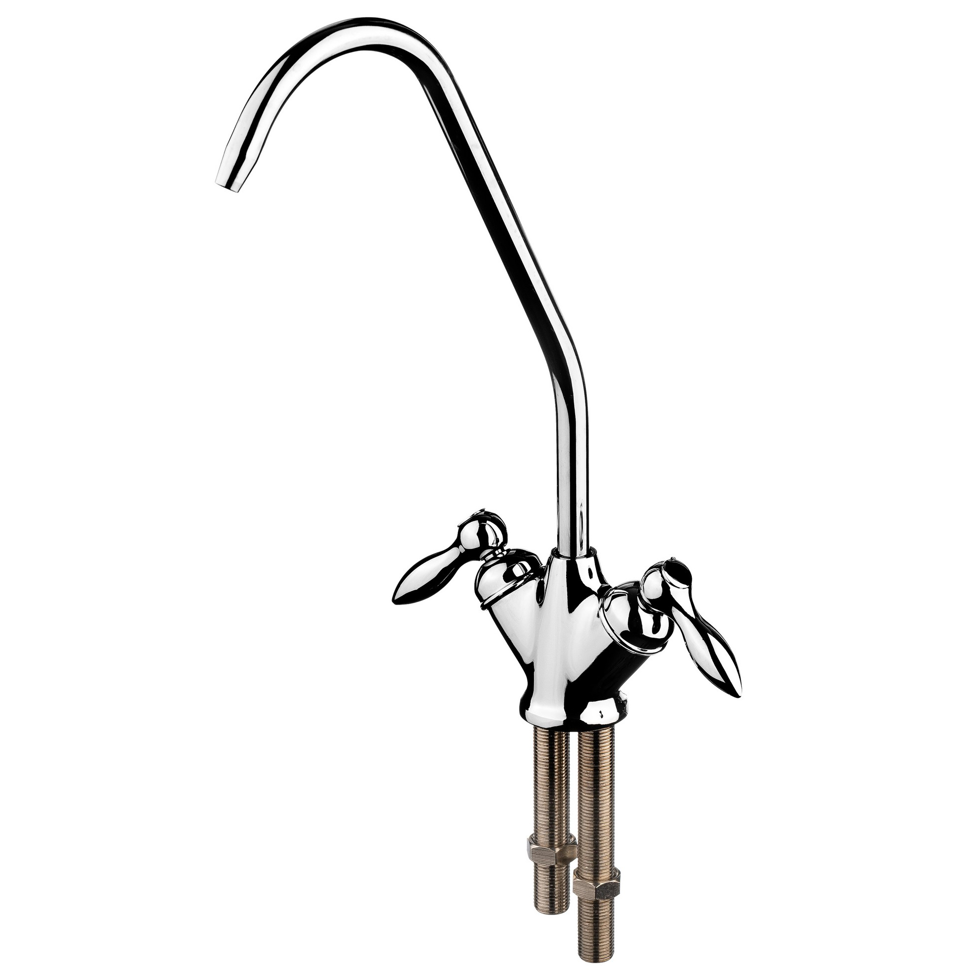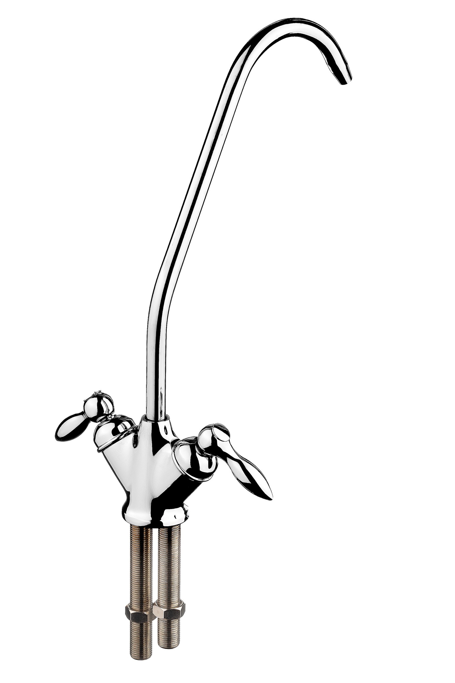 Кран с двумя вентилями обеспечивает подачу воды с минералами или без них. Кран изготовлен из современных экологически безопасных материалов с нанесением особо прочного хромированного покрытия и рассчитан на работу с холодной водой. Кран устанавливается на мойку или столешницу в любом удобном для эксплуатации месте.