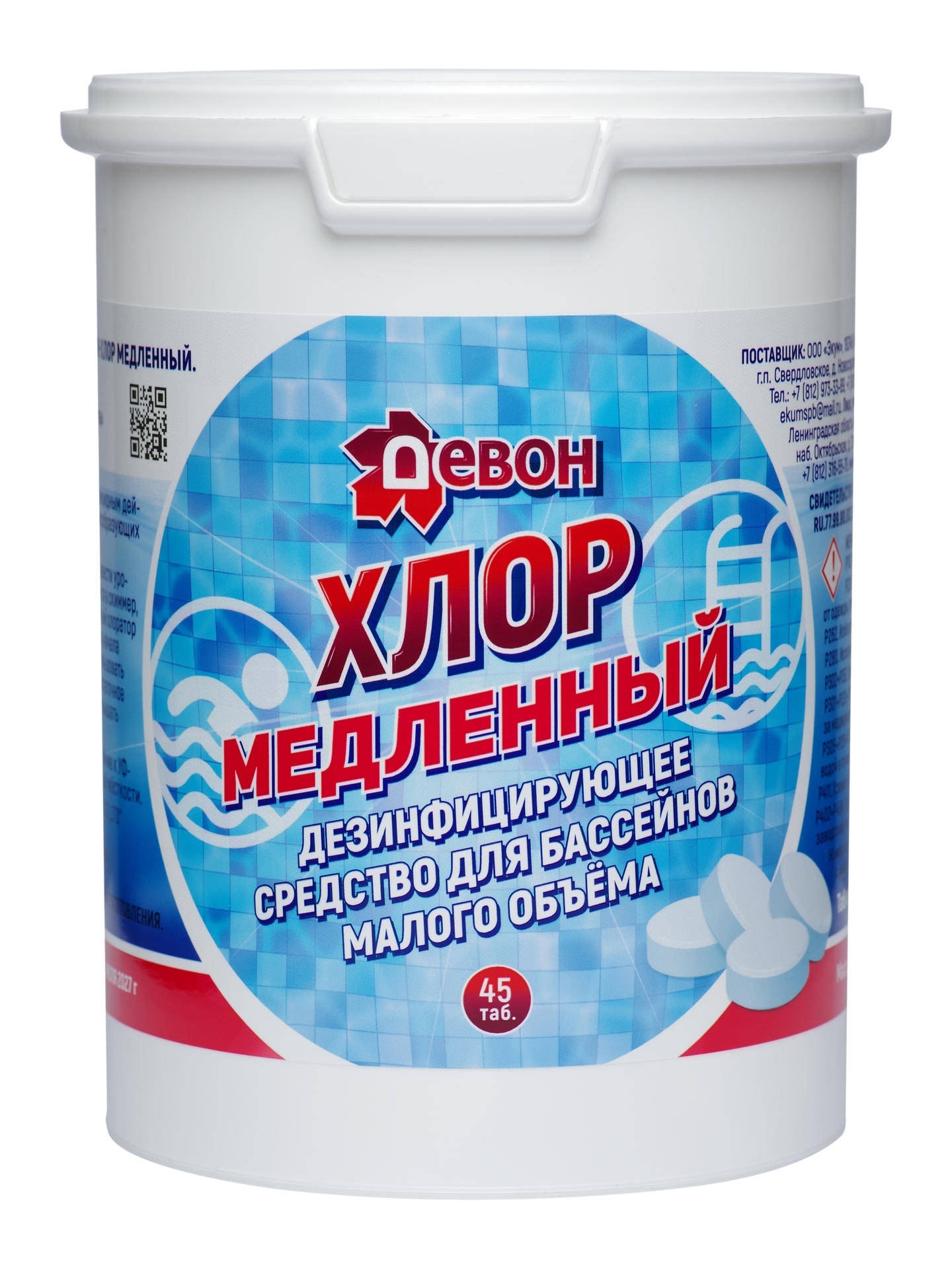 «Девон-Хлор» медленный - это медленно растворяемое дезинфицирующее средство на основе стабилизированного хлора для частных плавательных бассейнов малого объёма. Рассчитан на постоянную обработку воды в бассейне. Обладает антимикробной активностью в отношении бактерий и вирусов, предупреждает образование водорослей, а также оказывает разрушительное воздействие на органические вещества, вызывающие помутнение и загрязнение воды.