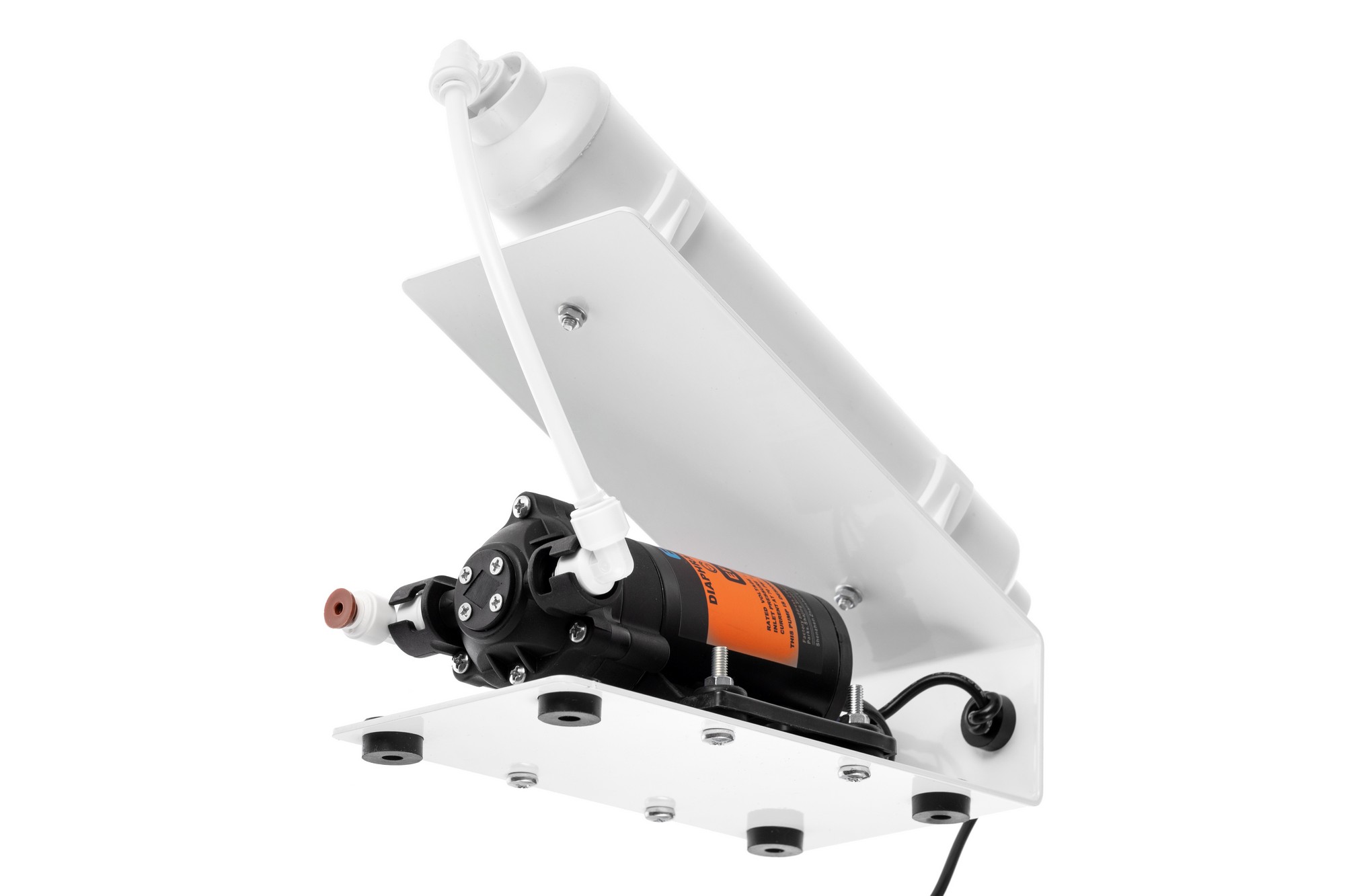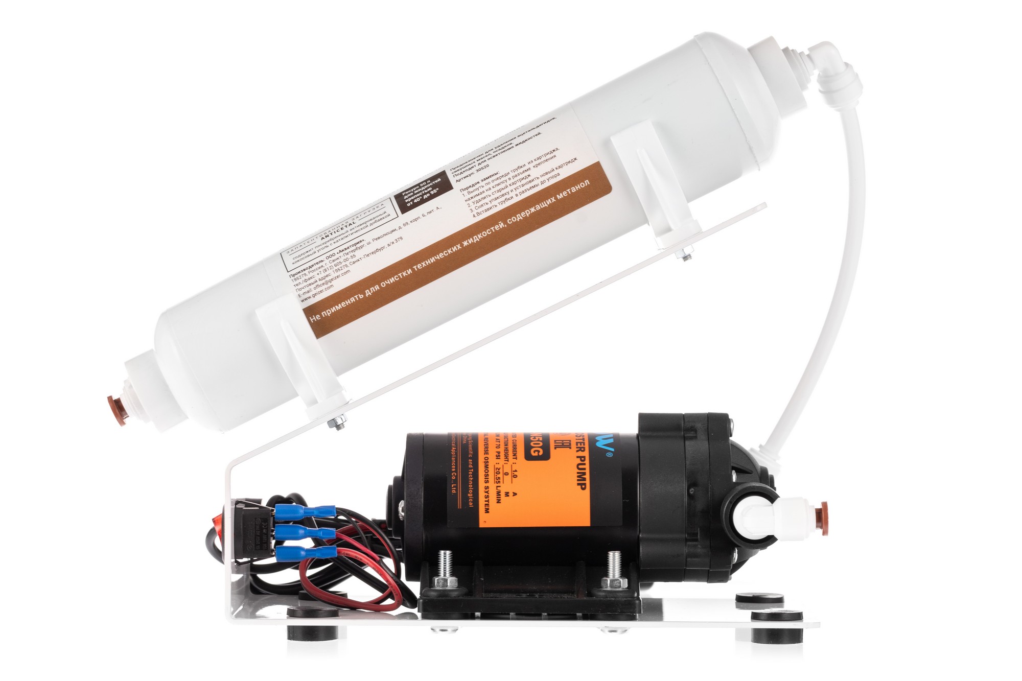 - Компактный и удобный — помпа позволяет использовать самый простой вариант: ведро – фильтр – бутыль