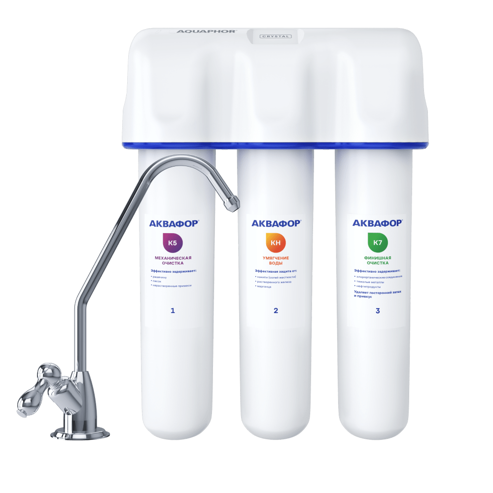 Модуль KH снижает жесткость воды и предотвращает образование накипи в чайнике. Увеличенный ресурс и легкая замена модулей. Удаляет хлор, тяжелые металлы, пестициды, нефтепродукты и другие распространенные загрязнители. Подает чистую питьевую воду на отдельный кран.