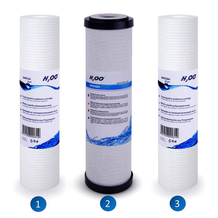 - Картриджный фильтр WWBH (FCCBL) на основе прессованного угля из кокосовой скорлупы, который удаляет хлор, некоторые пестициды и органические вещества