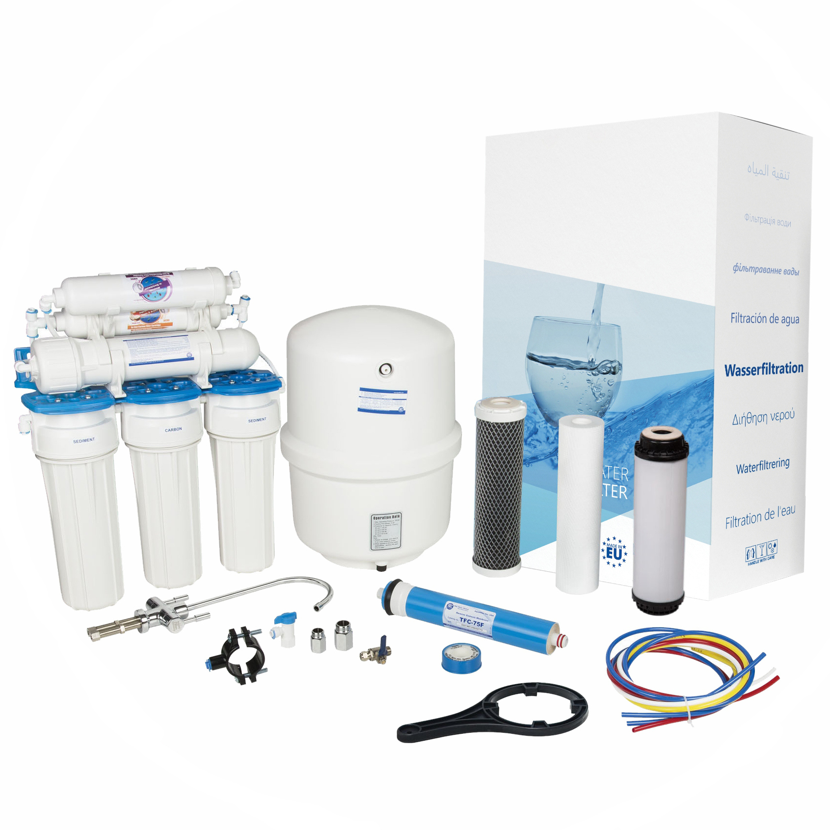 6-ти ступенчатая система обратного осмоса. Благодаря высокому качеству мембраны можно очистить до 280 литров воды в день. Малый рейтинг мкм 0,0001 мкм, позволяет удалить большинство загрязнений из воды, включая бактерии и вирусы. Система оснащена угольным картриджем AICRO, что улучшает вкус и запах воды, и картриджом для минерализации AIMRO, который обогащает воду такими элементами, как кальций и магний.