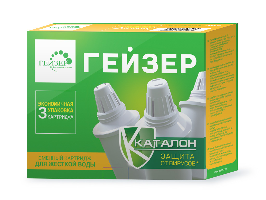 Сменные модули (картриджи) имеют одинаковые присоединительные размеры, взаимозаменяемы и могут устанавливаться в любой фильтр-кувшин Гейзер (а с использованием переходников — в кувшины других производителей). Комплект сменных модулей 302 для жесткой воды.
