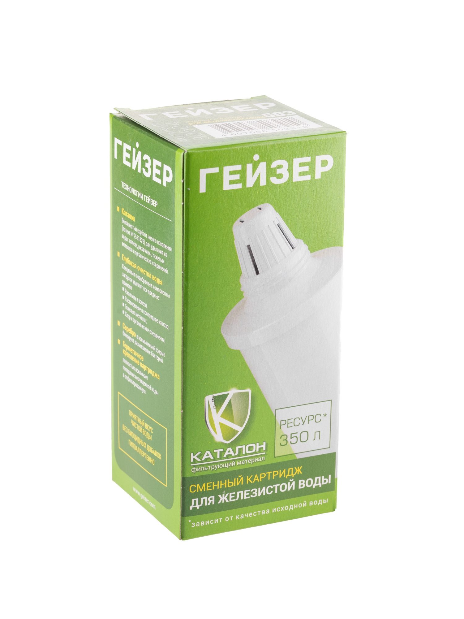 Картридж 503 применяется в фильтрах-кувшинах Гейзер для комплексной очистки железистой воды. Ресурс: 350 л. Производство: Россия.
