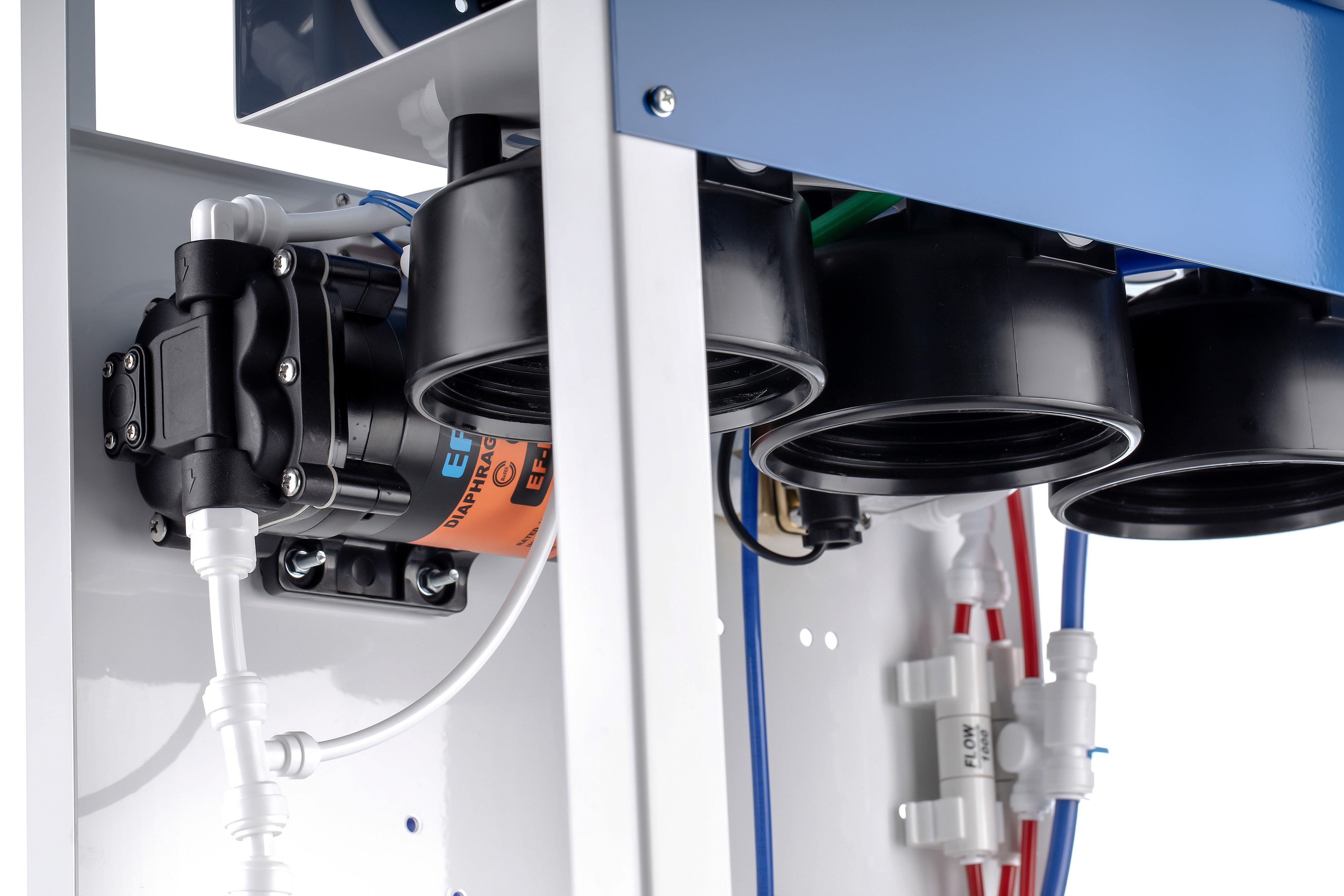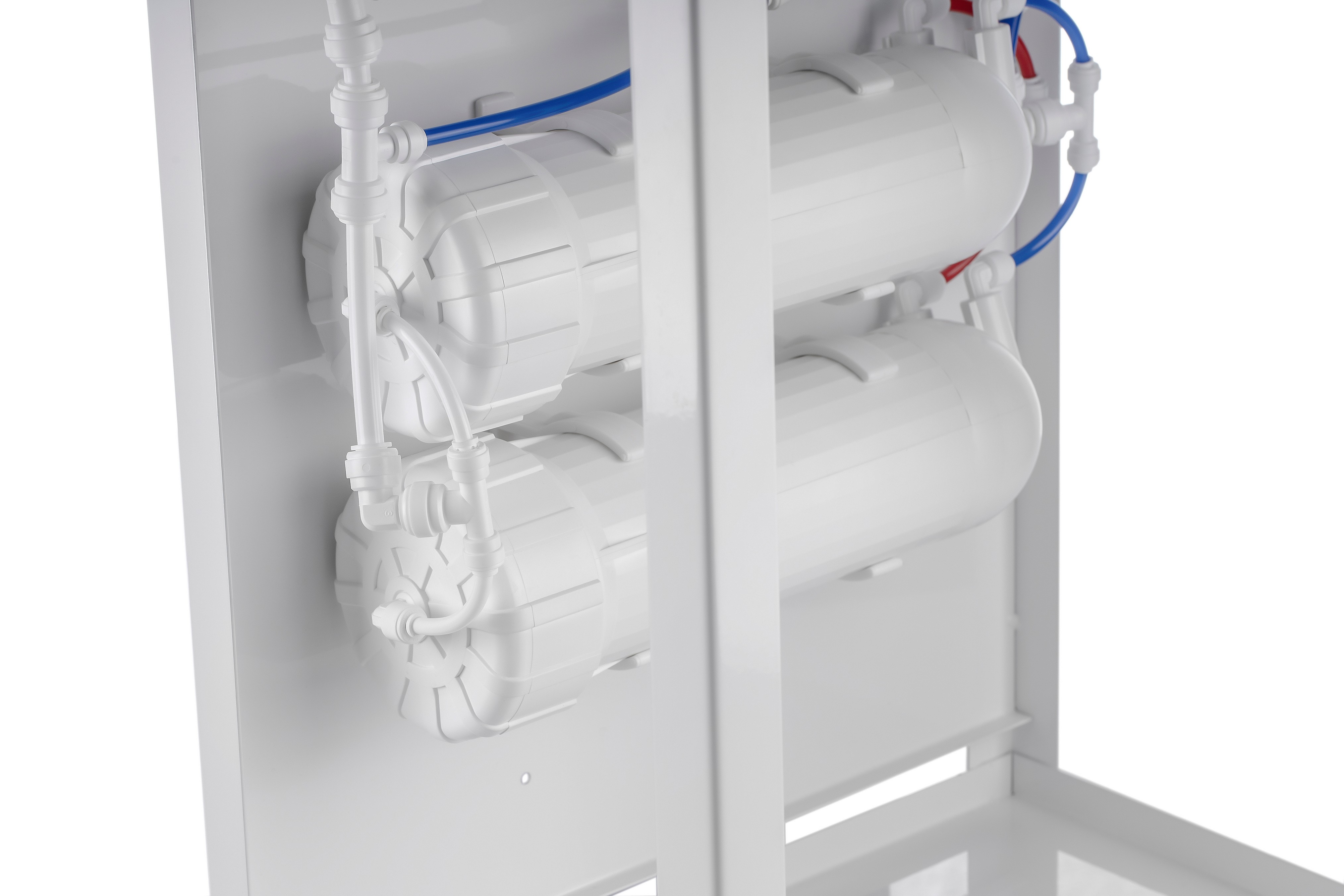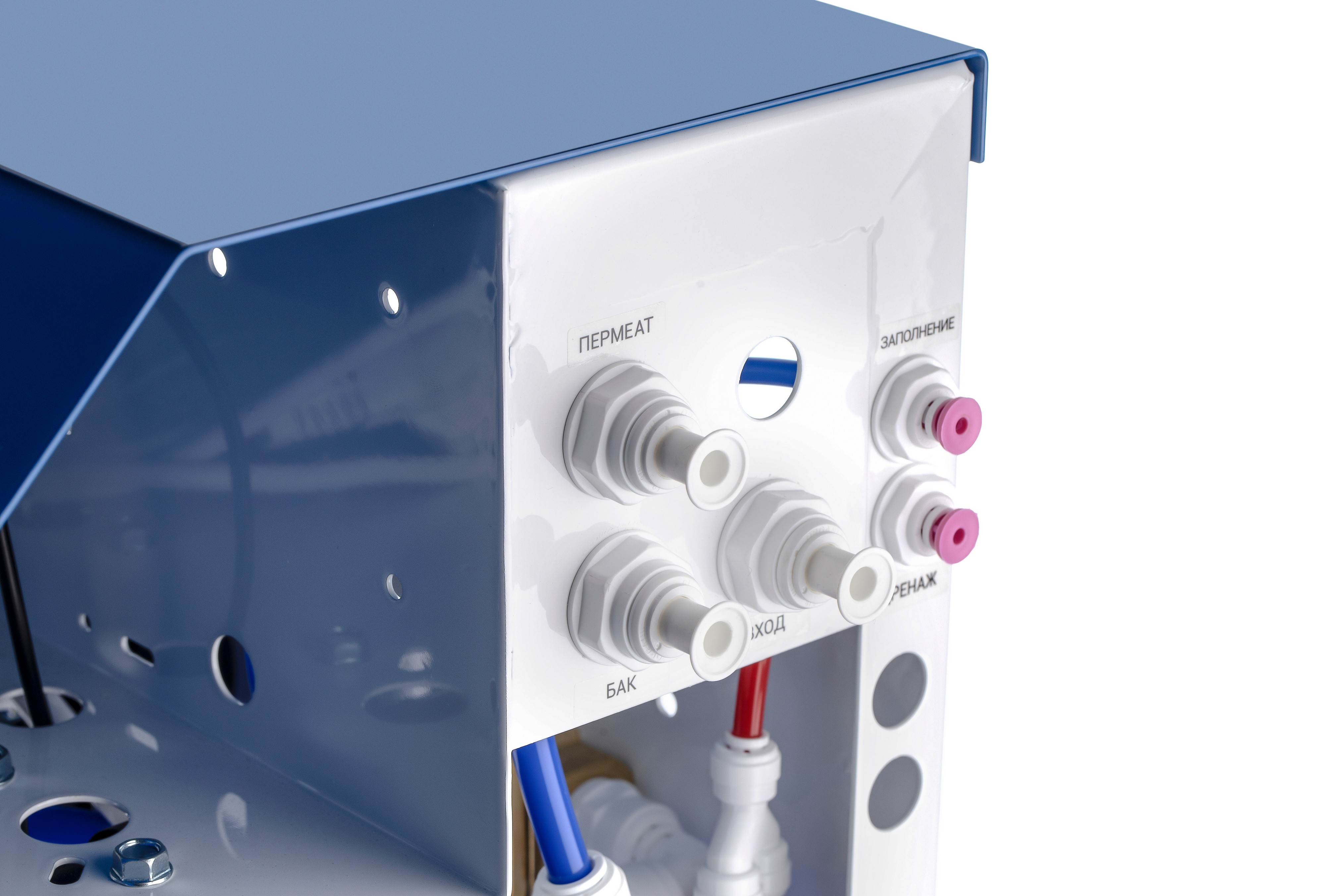 - Основная очистка воды выполняется на 2-х обратноосмотических мембранах 3021 400 GPD. Пористость мембран 0.0001 мкм.