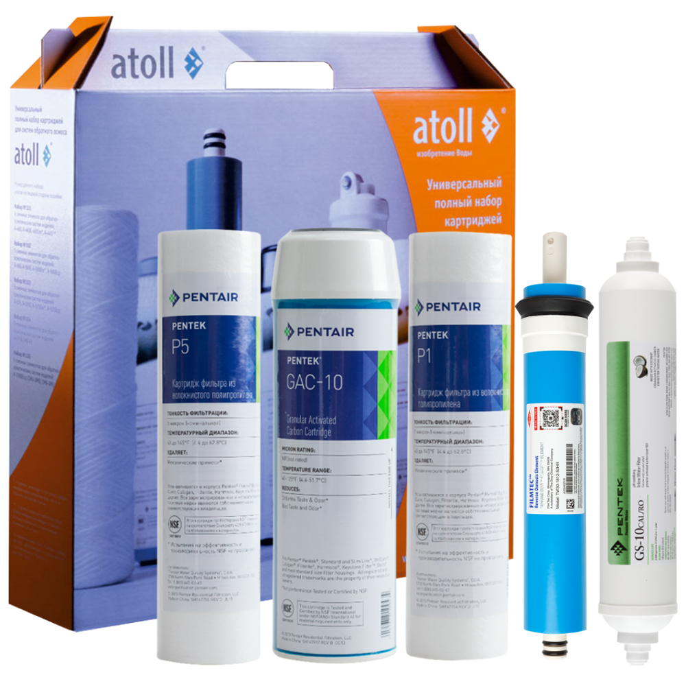 Полный набор картриджей Atoll №102m предназначен для замены использованных элементов в системах обратного осмоса.
