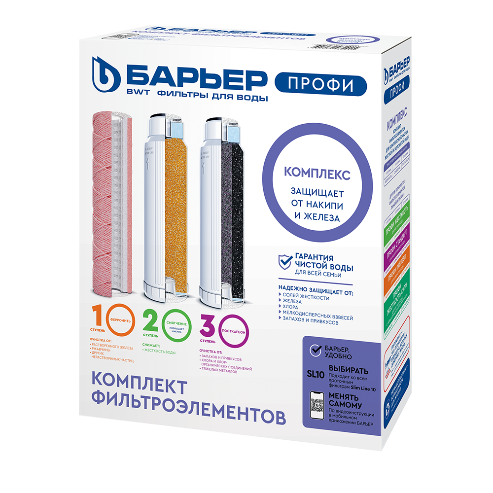 В комплект входит:- БАРЬЕР ПРОФИ Ферронить навитой материал с прочными ионообменными связями для удаления растворённого и коллоидного железа при высоких концентрациях – до 3 ПДК (до 0,9 мг/л).