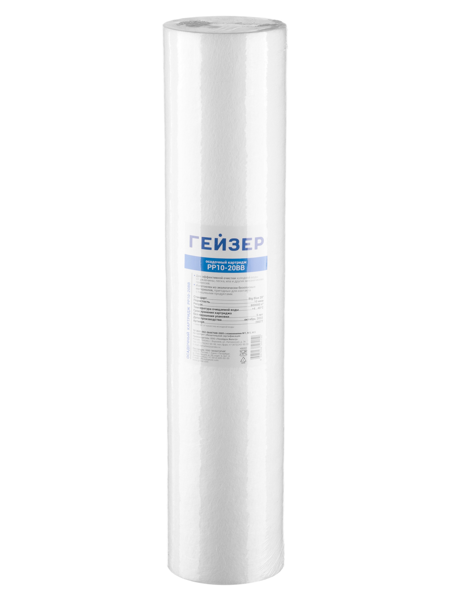 PP 10 - 20ВВ - картридж из вспененного полипропилена, предназначен для механической очистки воды от ржавчины, грязи, песка и других нерастворимых примесей размерами более 10 мкм. Восстановлению не подлежит, после окончания ресурса заменяется на новый.