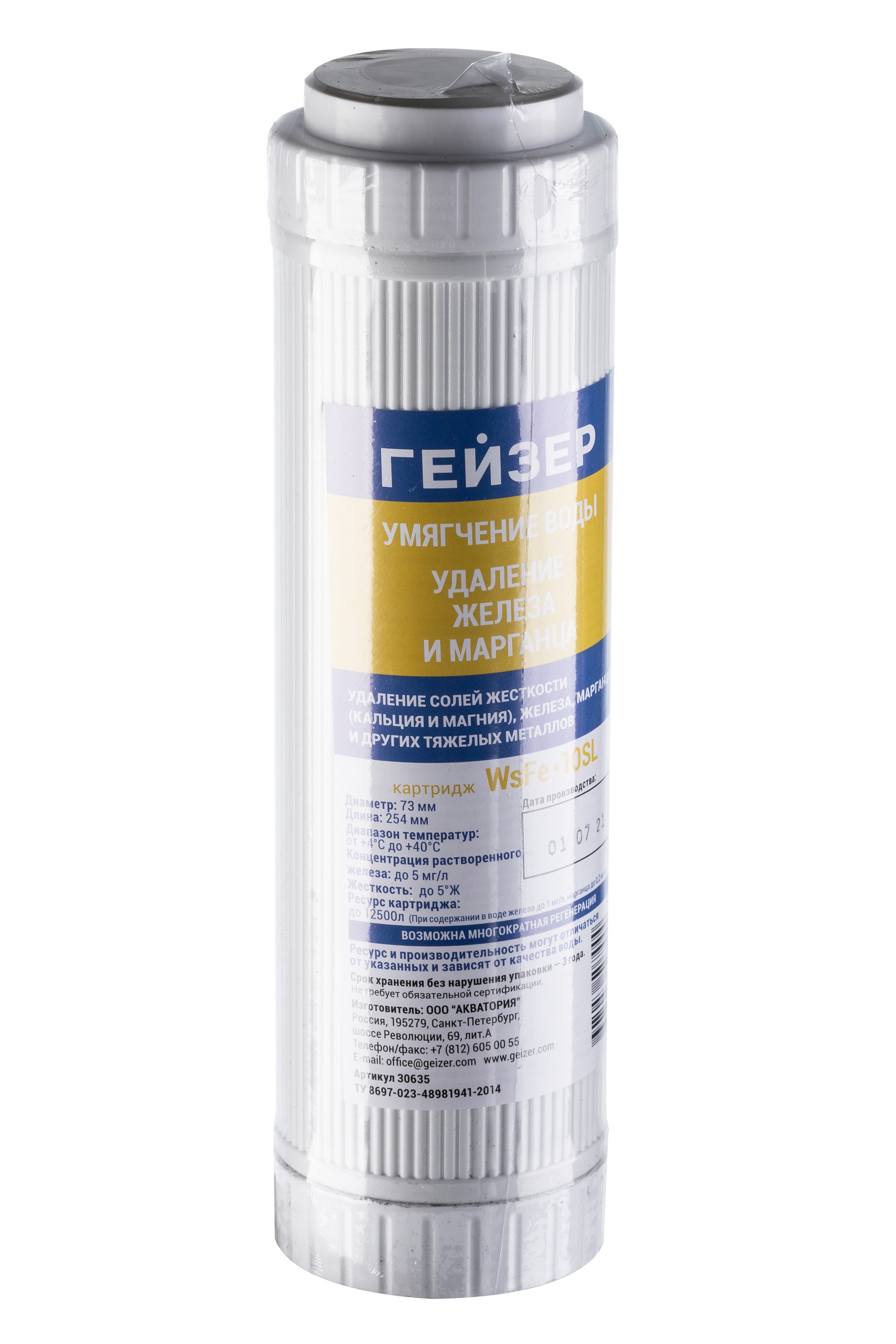 Картридж Гейзер WSFE - 10SL предназначен для удаления солей жесткости (кальция и магния), железа, марганца и других тяжелых металлов.