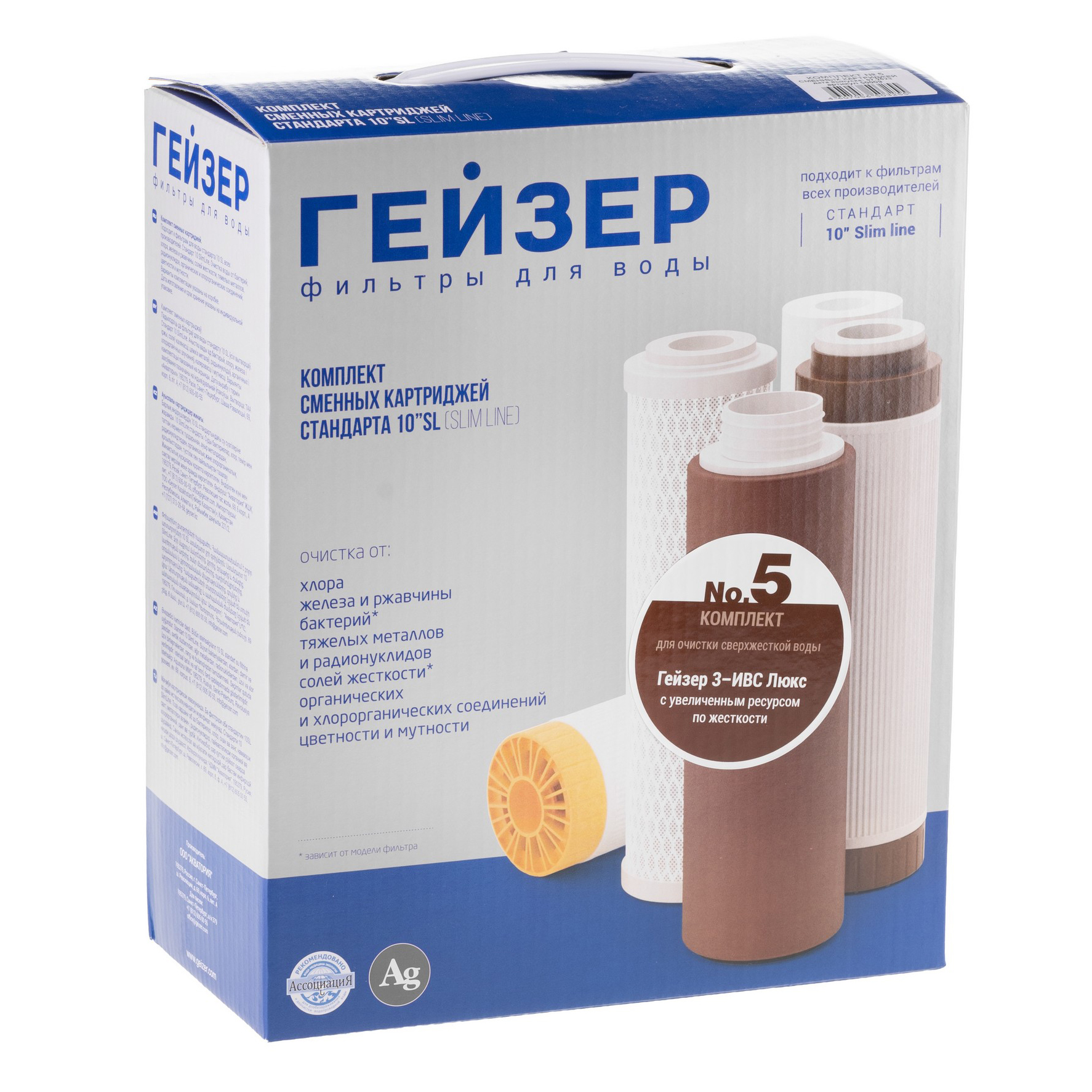 Комплект сменных картриджей №5 предназначен для фильтра Гейзер 3 ИВС Люкс (высокий уровень минерализации).