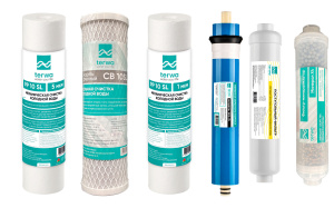 Комплект картриджей Terwa для обратного осмоса (PP5 + CB + PP1 + мембрана 75 + постфильтр резьба + минерализатор резьба)