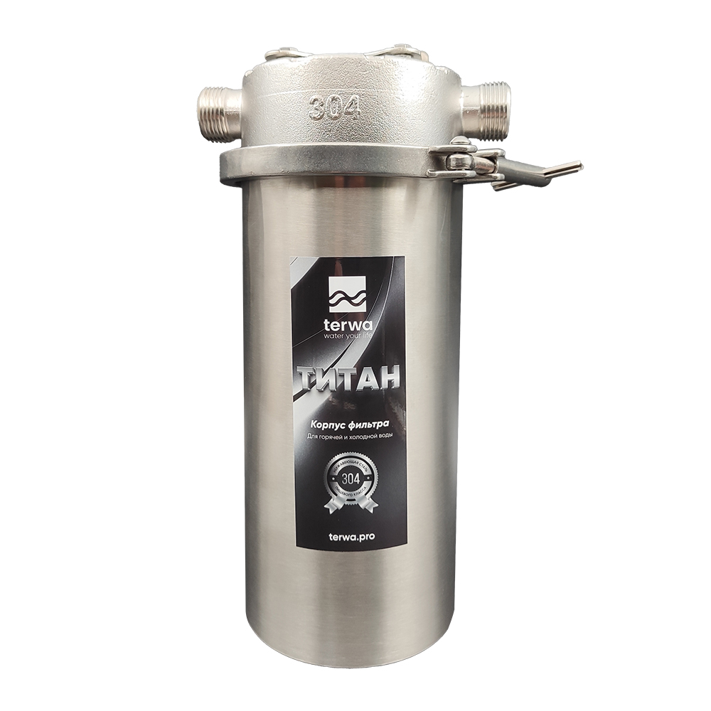 Terwa Титан 10ВВ (с манометром) – универсальный магистральный фильтр для очистки горячей и холодной воды. Корпус фильтра выполнен из высококачественной нержавеющей стали марки 304L.