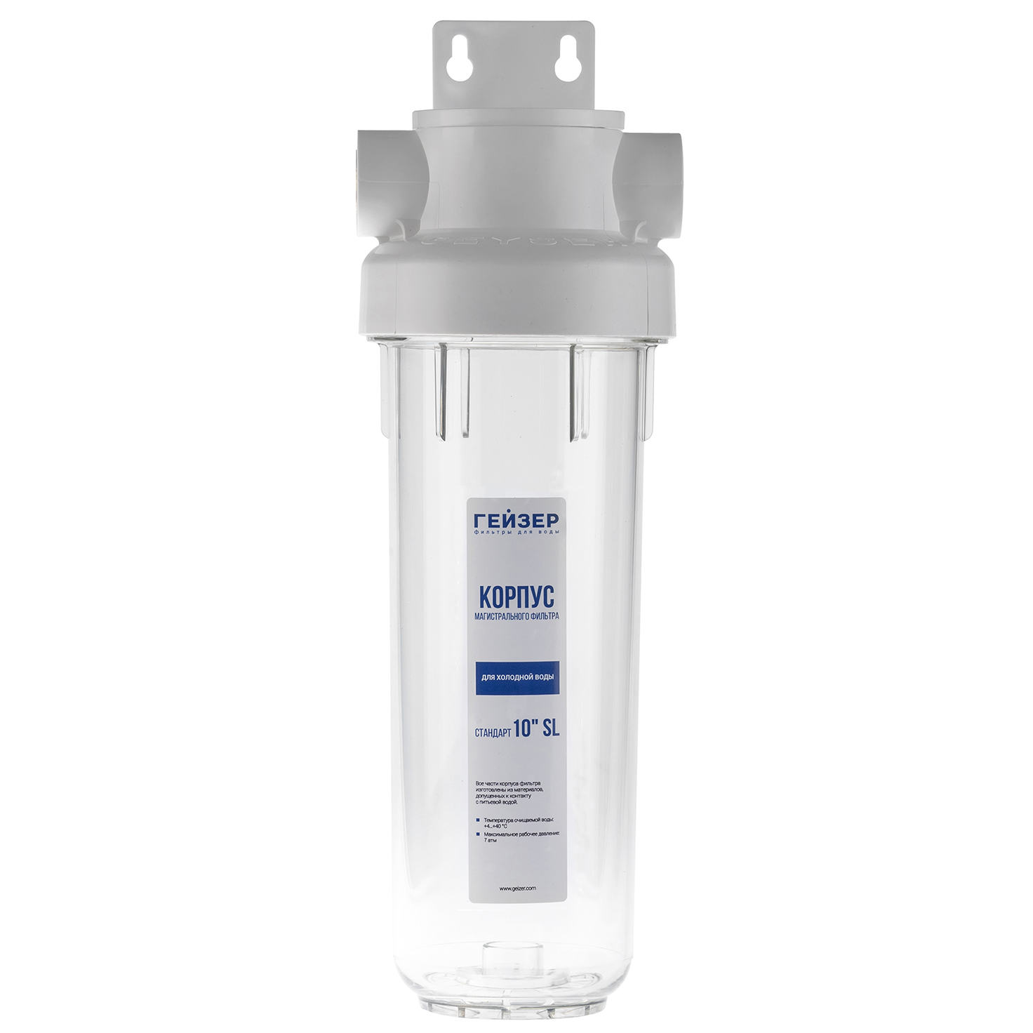 Корпус фильтра Гейзер Гарант 1/2 10SL рассчитан на работу под давлением и установку на входе в систему холодного водоснабжения. Выполнен из суперпрочного пластика ПЭТ пищевого класса, который обладает повышенной стойкостью к механическим повреждениям.