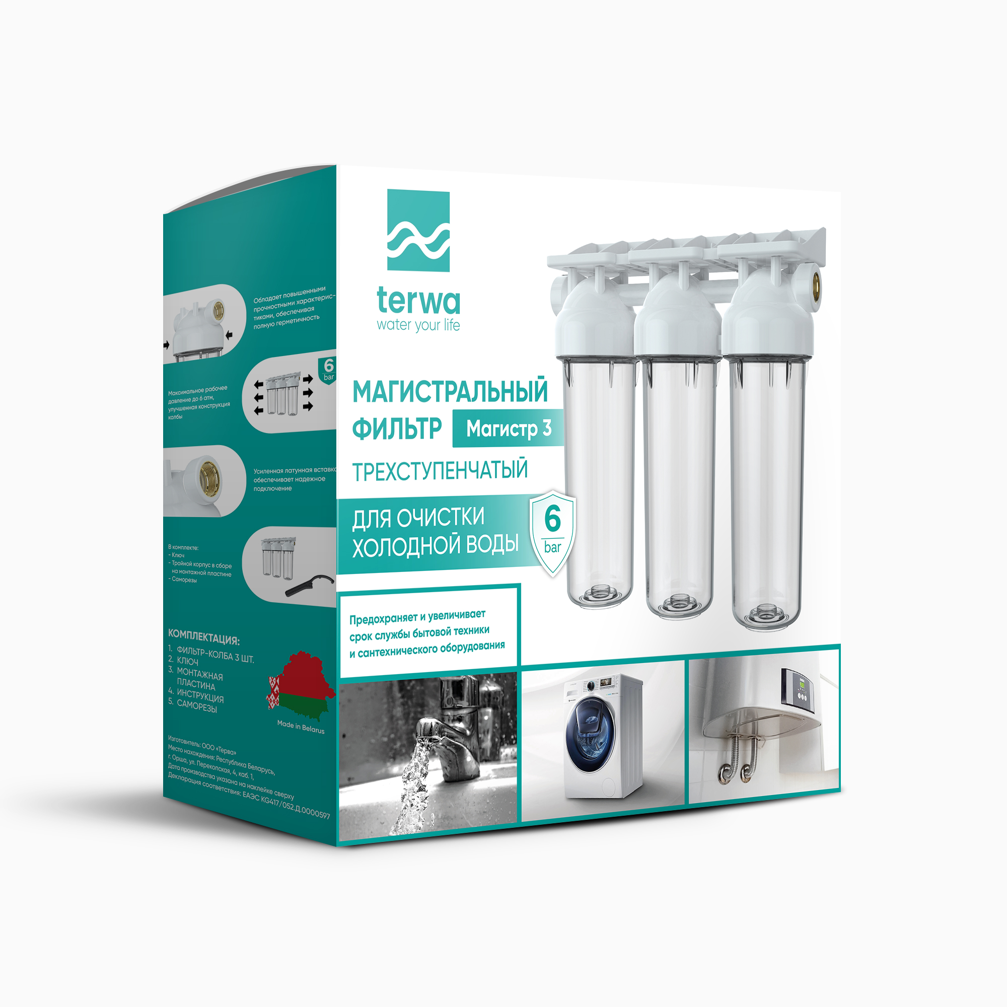 Магистральный фильтр для холодной воды трехступенчатый Terwa Магистр-3 1/2"
