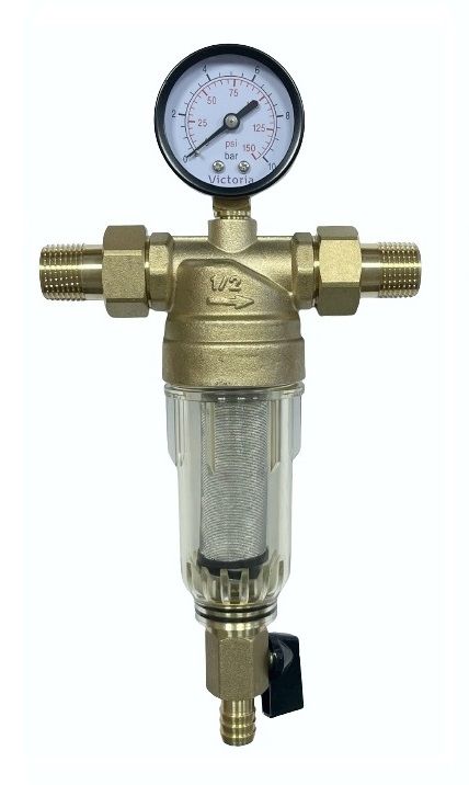 Victoria 27-701 Фильтр с манометром, промывной для хол. воды 1/2" (тонкая очистка) с американками