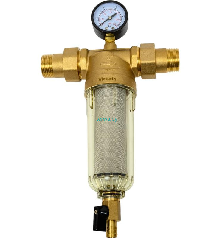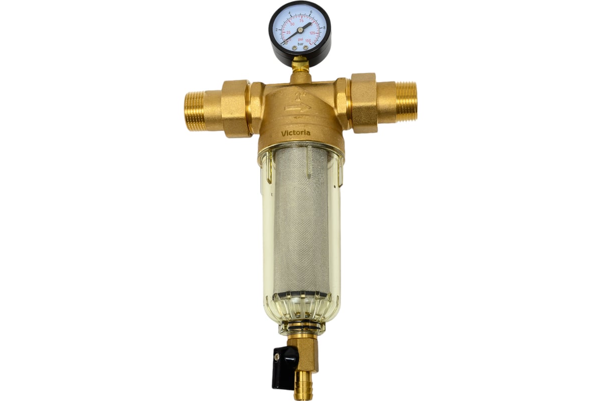 Victoria 27-705 Фильтр с манометром, промывной для холодной воды 1" (тонкая очистка) с американками