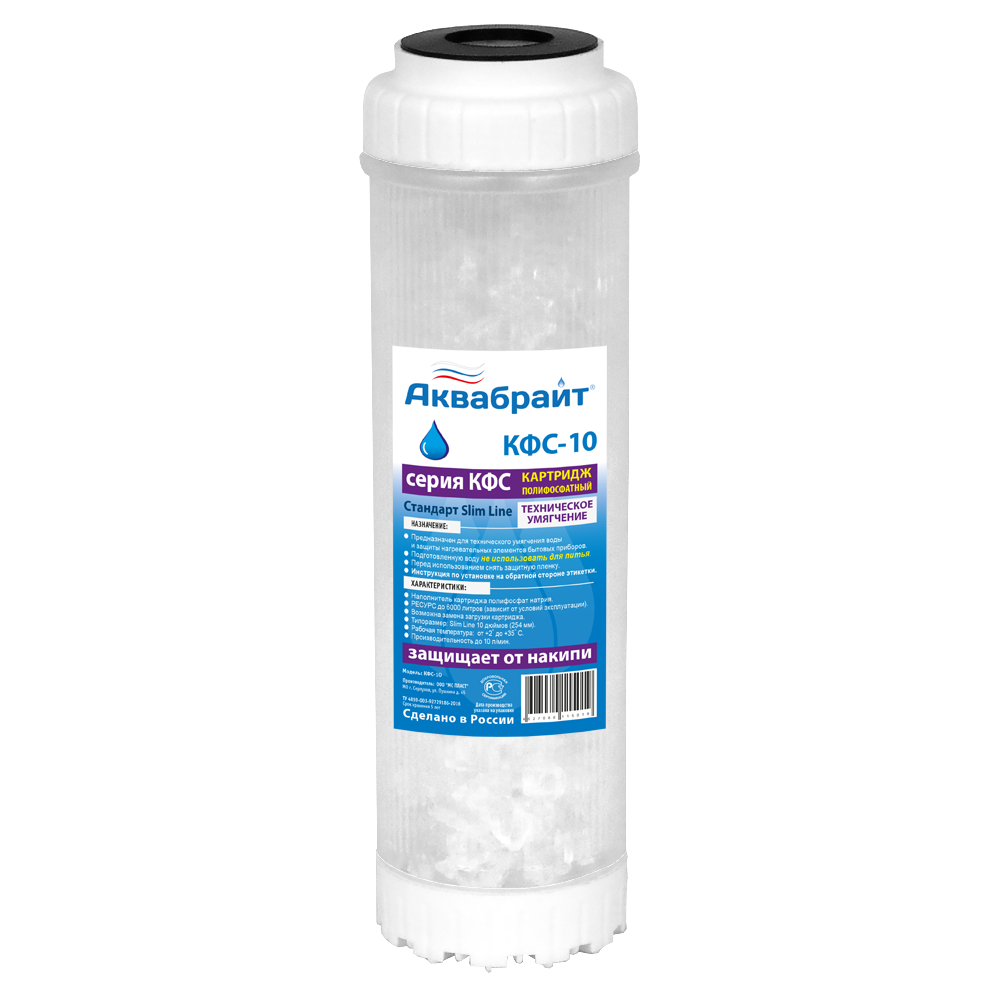 КФС-10, Картридж с ПОЛИФОСФАТОМ для ТЕХНИЧЕСКОГО умягчения воды АКВАБРАЙТ.